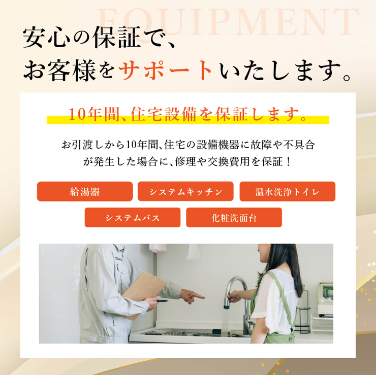 【住宅設備の長期保証あり】 システムキッチン、システムバス、トイレ、洗面台、給湯器などの住宅のメイン設備を最長10年間、修理や交換費用を補償します!※諸条件あり 24/26