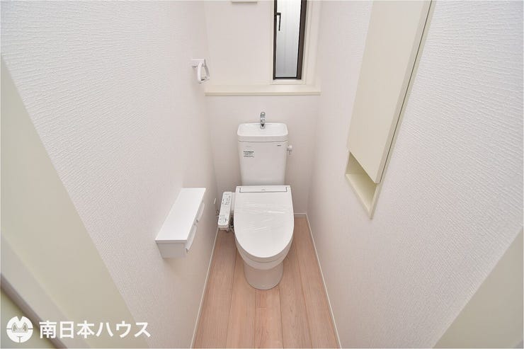 【トイレ】温水洗浄便座機能付きのトイレです!収納もあり、トイレットペーパーや掃除道具を収納可能♪ 16/42