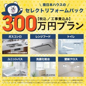300万円プランではシステムキッチンは既存を活かしてガスコンロやレンジフードの設備交換、ユニットバス、洗面化粧台、トイレは機器交換を想定しプラン。予算を抑えたセミオーダーパック 9/15