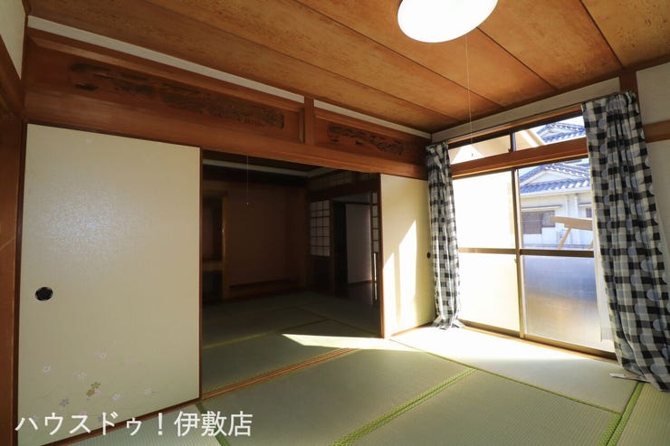 【1F和室6帖】陽光がたっぷり差し込む南向きの和室は、畳や壁の状態もきれいです。広縁と繋げて開放感あふれる空間にリノベーションするのもおすすめ。この「明るさ」はぜひ現地で体感してください。 12/35