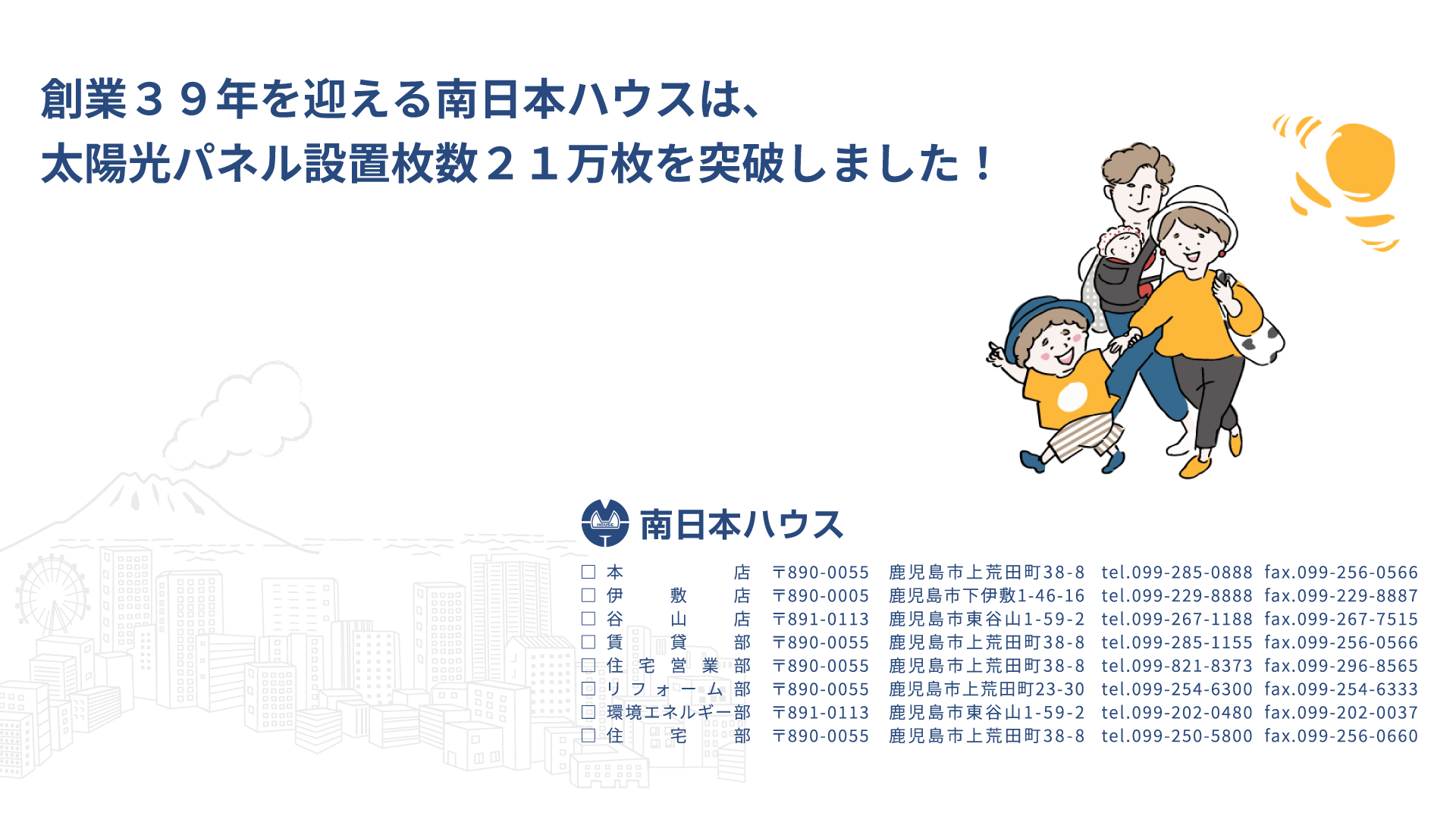南日本ハウスは、令和6年12月に太陽光パネルの設置枚数21万枚を突破しました。