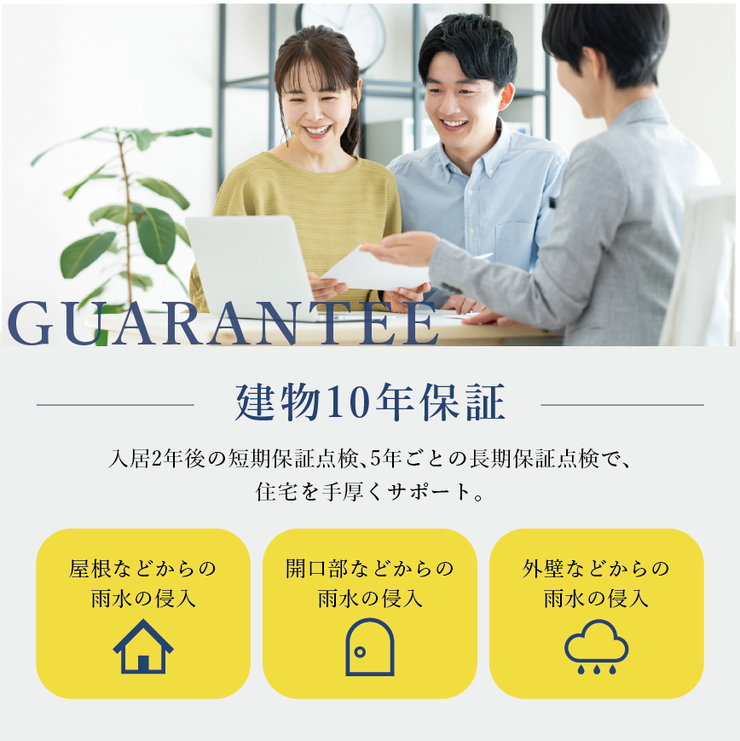 【建物10年保証】建物の主要構造部「屋根、基礎、壁、柱、開口部など」に関して10年間の保証があります! 39/42